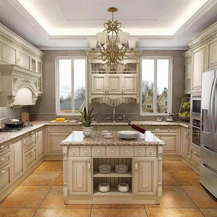 Solid wood kitchen cabinets with classic design